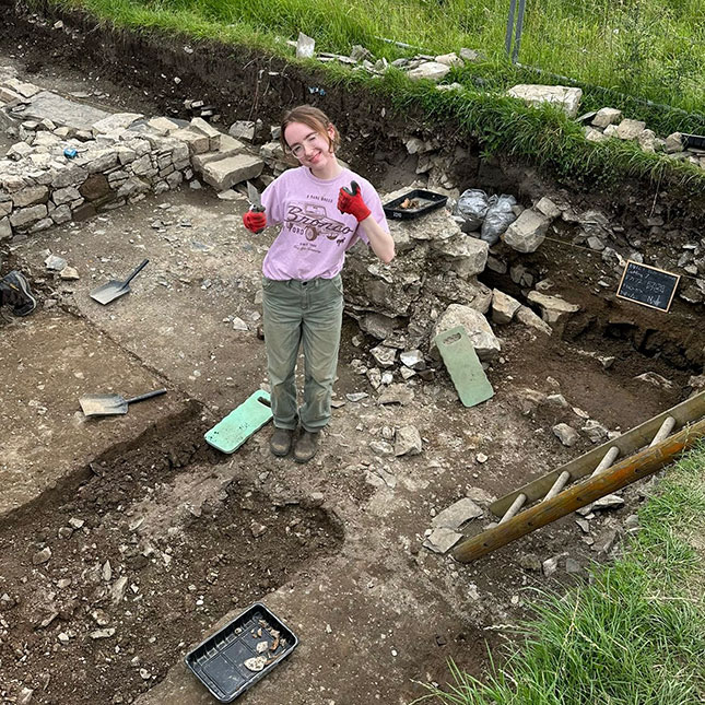 As a recipient of Skidmore’s SEE-Beyond Award, Holland joined the Blackfriary Archaeological Project, an internationally recognized excavation site focused on a medieval Dominican friary. There, she worked hands-on with architectural features, ceramic and faunal materials, and the remains of individuals dating back to the 13th century.