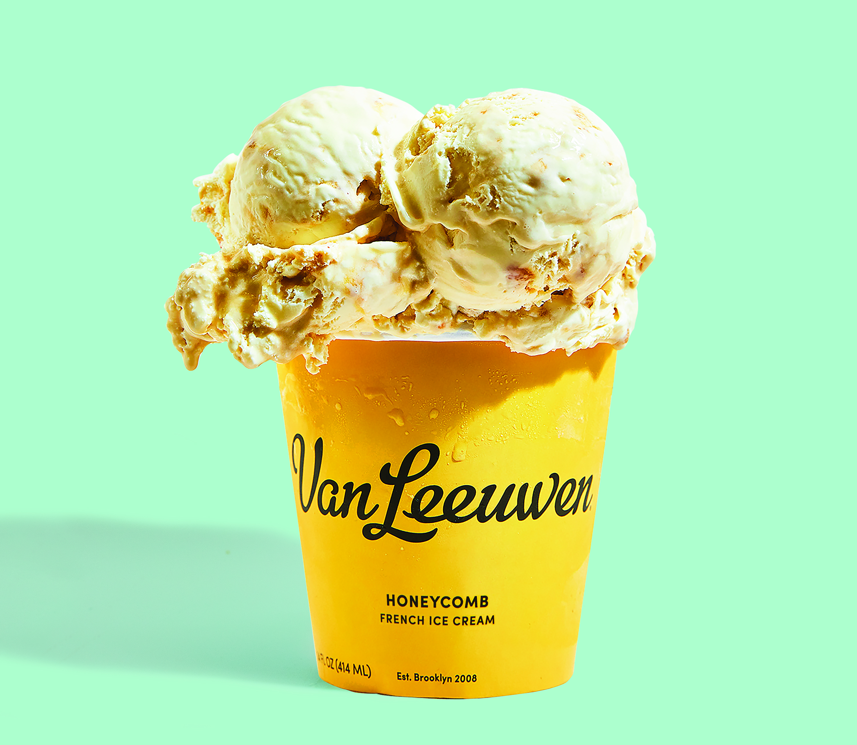 Their ice cream always looks as good as it tastes. The company Instagram displays bold rainbows of pint containers, pastel-toned shops, and beautiful scoops of ice cream, like Vegan Planet Earth (a blue amaretto ice cream with pieces of green matcha cake), not to mention the original “buttery” yellow truck. “I’m really obsessive about aesthetics,” Van Leeuwen says.