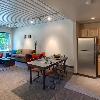 - Kitchen with a microwave, refrigerator, sink, stove/oven, and fire extinguisher (one per apartment)