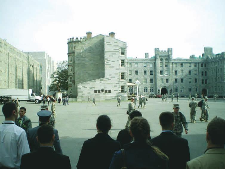 SCUSA was an academically rigorous and stimulating challenge. What really made my time at West Point, however, was observ-ing the fun, engaging way in which cadets commit themselves to their studies and training. SCUSA attendees spent the three nights in the barracks (the West Point dorms) on cots, sharing rooms with the West Pointers themselves. The speakers and roundtable sessions of the conference were informative and enlightening, but the most valuable part of the experience, in my opinion, was the opportunity for an in-sight into the lives and training of the cadets.