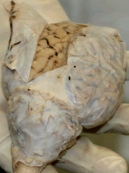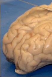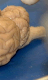 Optic Nerves : the optic chiasm and optic tracts are clearly visible on the ventral surface of the sheep brain, however portions of the optic tract often come off with the dura. The optic tracts are involved in transmitting visual stimuli from the eyes to the brain.