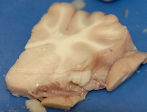 Slice B is an anterior slice of the coronal sections. We can tell anterior slices are anterior because we see only the corpus callosum and no fornix, no hippocampus. Anterior slices show the basal ganglia (caudate, putamen, globus pallidus) and do not show the thalamus. Corpus Callosum | Cingulate Gyrus | Internal Capsule Caudate | Putamen/Globus Pallidus