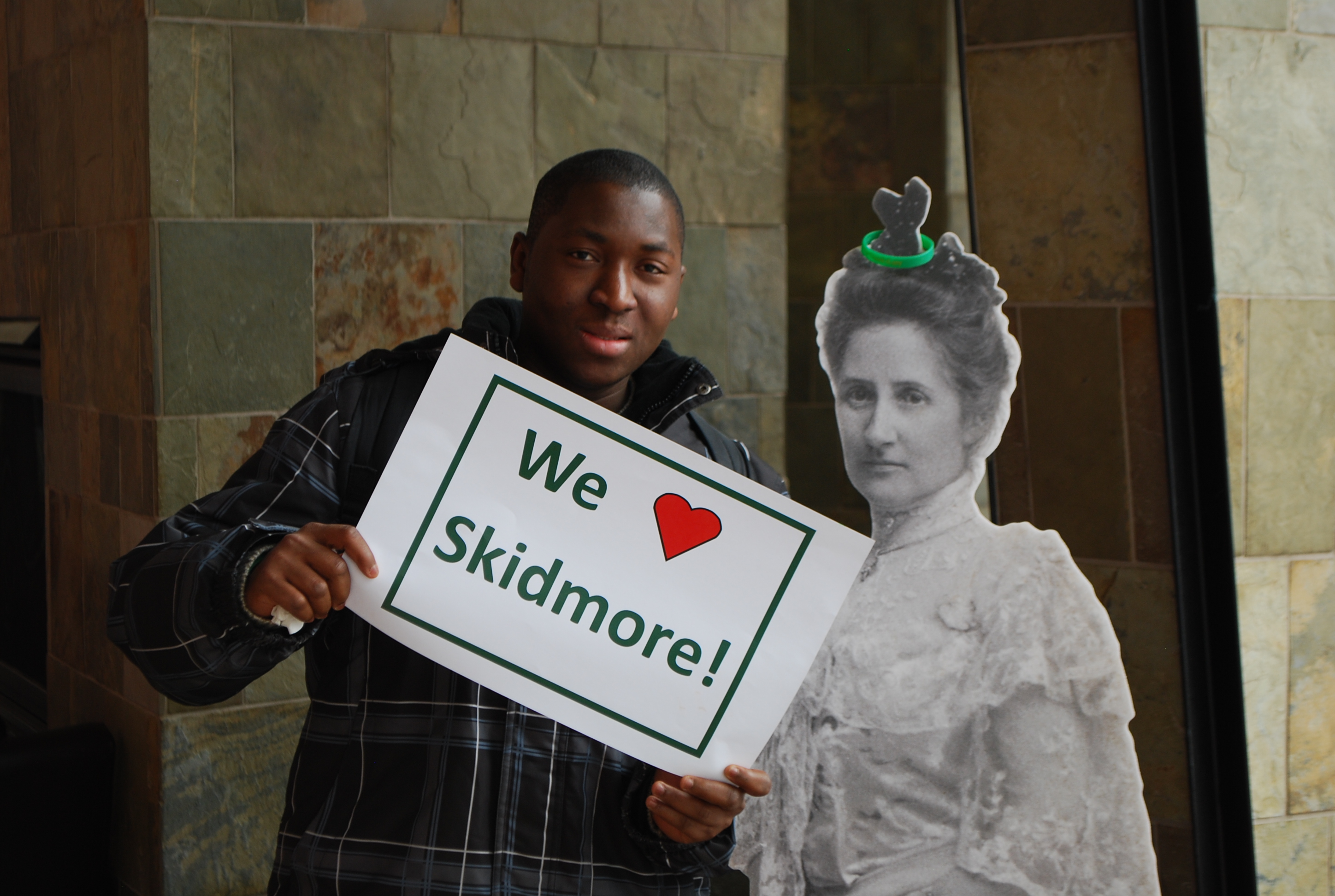 Cards. Cupcakes. Photos. Wrist bands. Just a few of the ways Skidmore students celebrated alumni and other donors on National Student Philanthropy Day. Tables and posters around campus encouraged students to remember and thank College donors. Skidmore President Philip Glotzbach and Matthew Walsh ’13, president of the Student Government Association, helped build momentum days before the event, sending campus-wide e-mails encouraging students to participate.