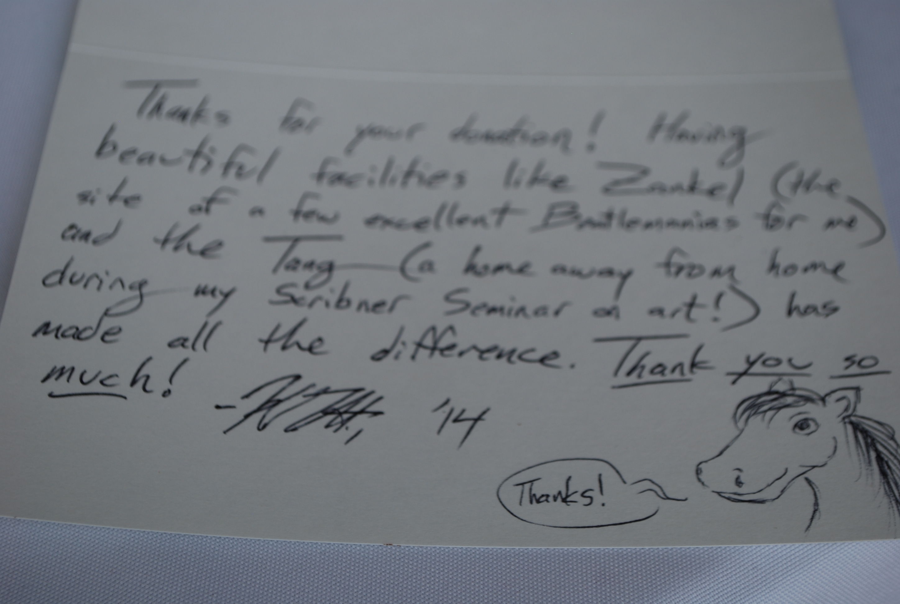 - “I am incredibly grateful for the contributions that you have made to an institution that has done so much good for me and for the rest of the student body, past, present, and future. You set a wonderful example for other alumni. Thank you.” —Sam Harris ’15 (Scarsdale, NY)