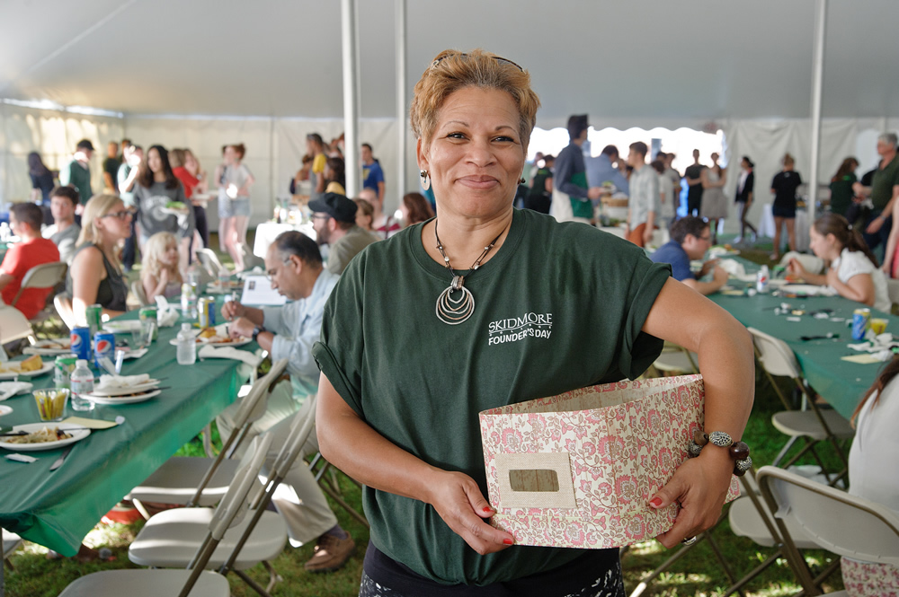 Such were a few of the questions correctly answered last week by students, faculty and staff at the College’s Founders Day celebration, which marked the first day of classes and honored the visionary founder of the Young Women’s Industrial Club, which ultimately was chartered as Skidmore College. Prizes for correct responses included just about anything with a Skidmore logo, including a lunchbox cooler, a blanket, a set of coasters, and a coffee mug.
