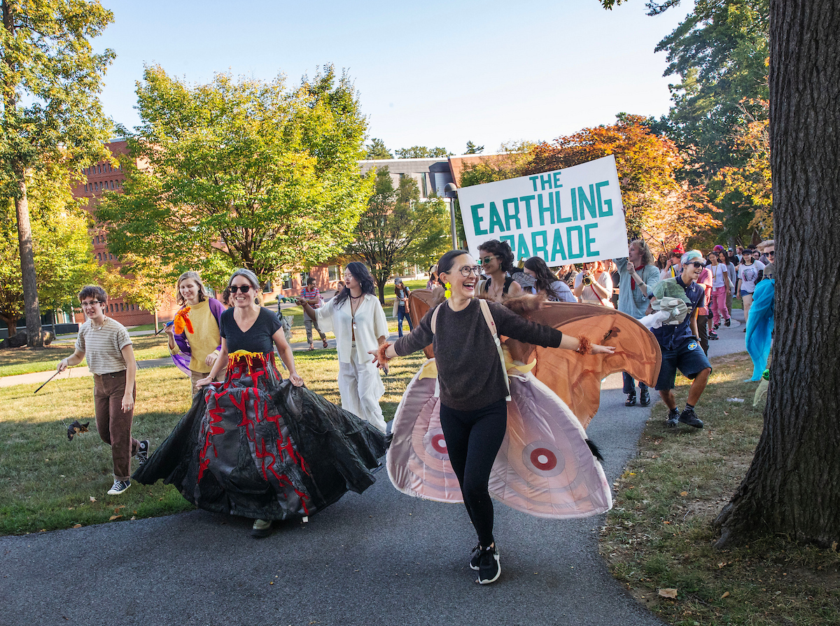 The Campus Open House featured the Earthling Parade, a vibrant procession led by artist Yvette Molina (right), marking the close of her two-year evolving exhibition “A Promise to the Leaves.”