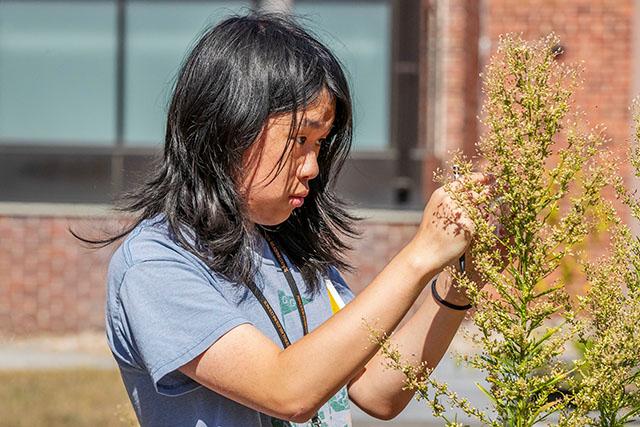 Experiential learning is a key component of our Scribner Seminar. Here, Callan Balsis ’29 captures a bee at Pitney Meadows Community Farm as part of our seminar’s efforts to understand local pollinators.