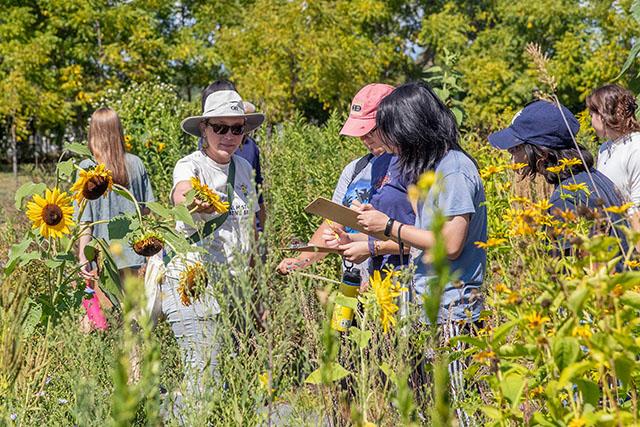 Early in the semester, we piled into campus vans and drove across town to visit two local pollinator gardens. These gardens provided models of what thriving pollinator gardens can look like — an opportunity to observe their insect visitors and learn about the particular goals, challenges, and successes of each garden.