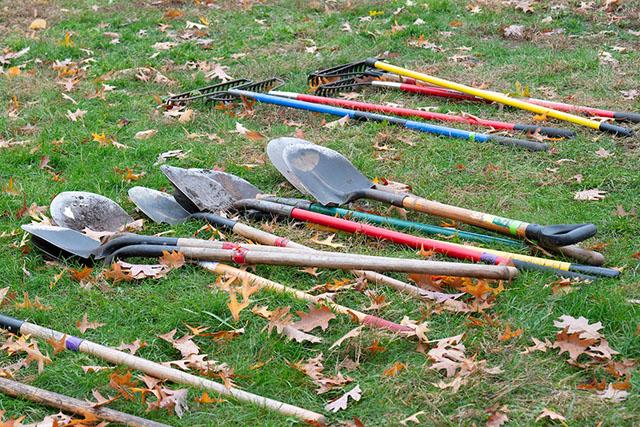 We finally gather to plant our garden on Halloween. It’s barely 50 degrees (Fahrenheit), and strong winds are shoving ragged clouds across the sky. After weeks of planning, it’s time to get our hands dirty. We’ve discussed basic garden design principles in class, but there’s no substitute for actually setting out the plants, evaluating, and then adjusting.