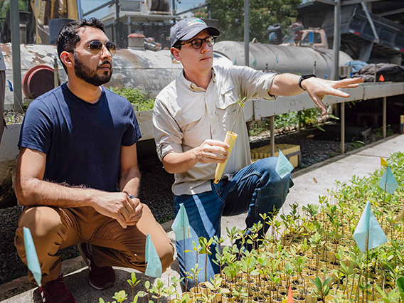 During a site visit to Protectores de Cuencas in Puerto Rico, Melvin Alvarez ’15 observes mangrove nursery and restoration work designed to support coastal resilience.