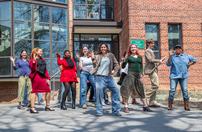 Assistant Professor Tammy Owens (right) and students in her Becoming Beyoncé course do the 'Single Ladies' dance outside Tisch Learning Center.