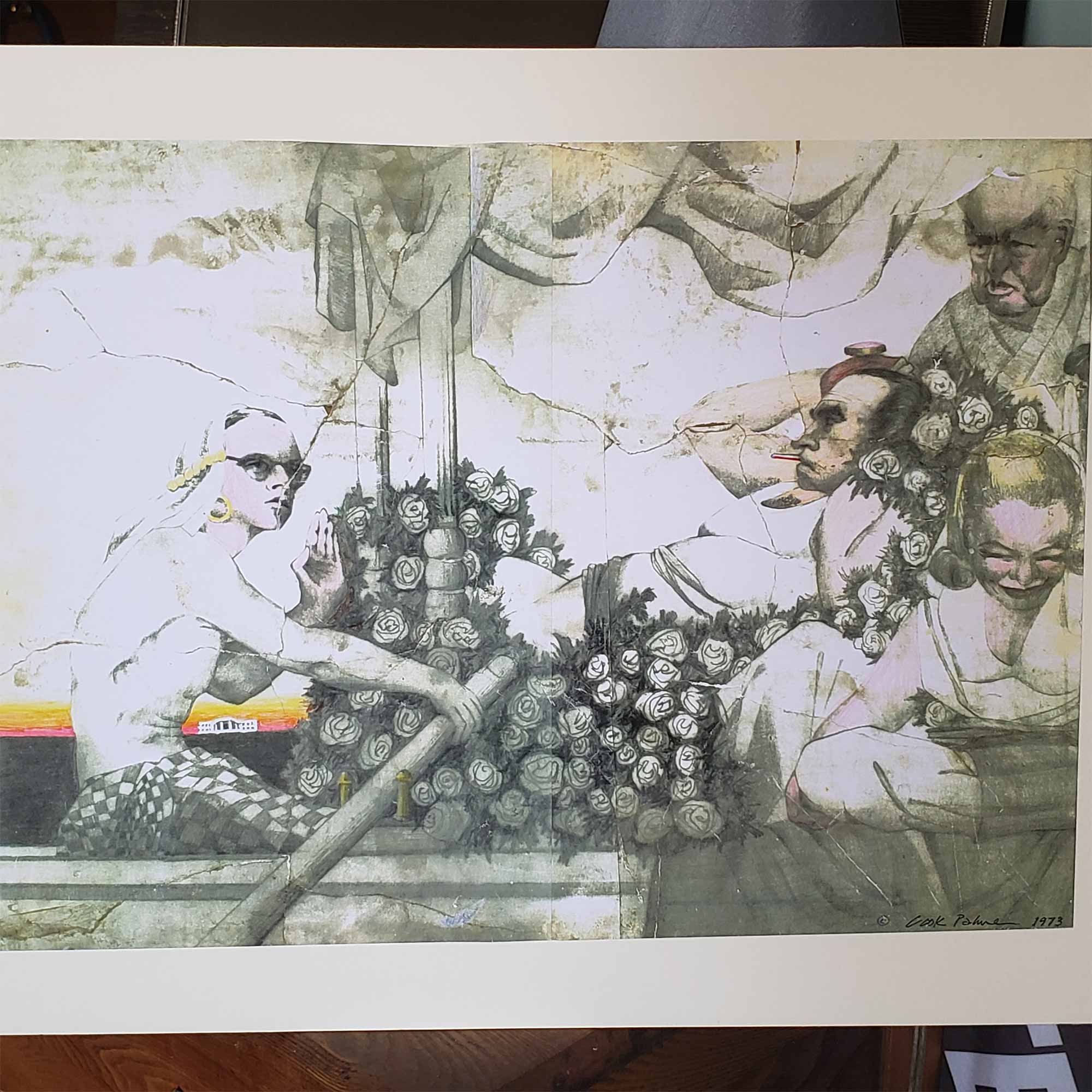 At Skidmore during the late '60s to early '70s studying Art and English, I was deeply active in efforts against the Vietnam war, especially when Nixon expanded the war into Cambodia. Imagine my awe at later seeing Nixon ousted as a crook! The Watergate hearings felt like tawdry history being made. Riveted by the live coverage and even the re-runs, I took Maxfield Parrish's composition of "Cleopatra Going Down the Nile" to draw "Nixon Going Down the Potomac." The drawing shows Sam Ervin, who presided in robe with gavel, behind a sick Nixon with thermometer and hot-water bottle. John Dean rows the barge — left hand raised to take the oath — afraid of prison himself. Martha Mitchell sits, privately enjoying Nixon's demise (and that of her corrupt husband John Mitchell, Nixon's AG, soon to spend time in prison). So much for history; "Trump Going Down the Potomac," underway, is far wilder.