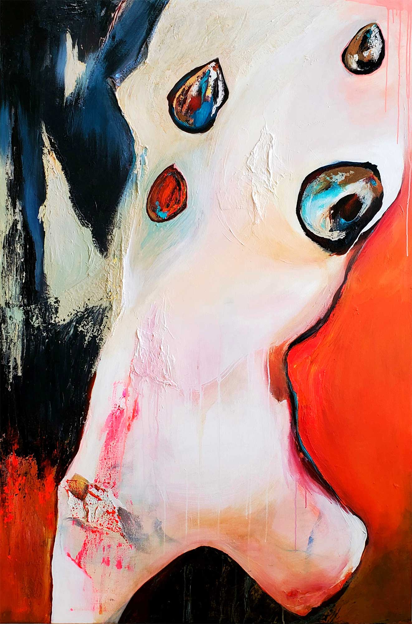 Examining the destruction that is on the horizon due to vampiric capitalism shows how art provides one of the last spaces for the sensory imagination to confront and transform the monoculture that presently engulfs the world. Reveling in vital materialism allows me to counterbalance the idealism of my other primary influence: Roman Catholic traditions from a folk magic point of view. I mutate historically oppressive ideologies, turning them against themselves in the drive for liberation. This eccentric cosmology (rooted in passion, mother goddesses) informs my work. My paintings, drawings, sculptures, installation and performances amass symbols that are somatic (teeth, genitalia), floral (ghost pipe), fungal (lion's mane), and cosmological (the moon). I maximally use bright colors, repetitive gestures and a combination of chaotic and controlled marks, with a particular focus on collaging states of consciousness through the chance juxtaposition of heterogeneous elements to illustrate the inherently surreal nature of perception and its tendency to edge to the wild.