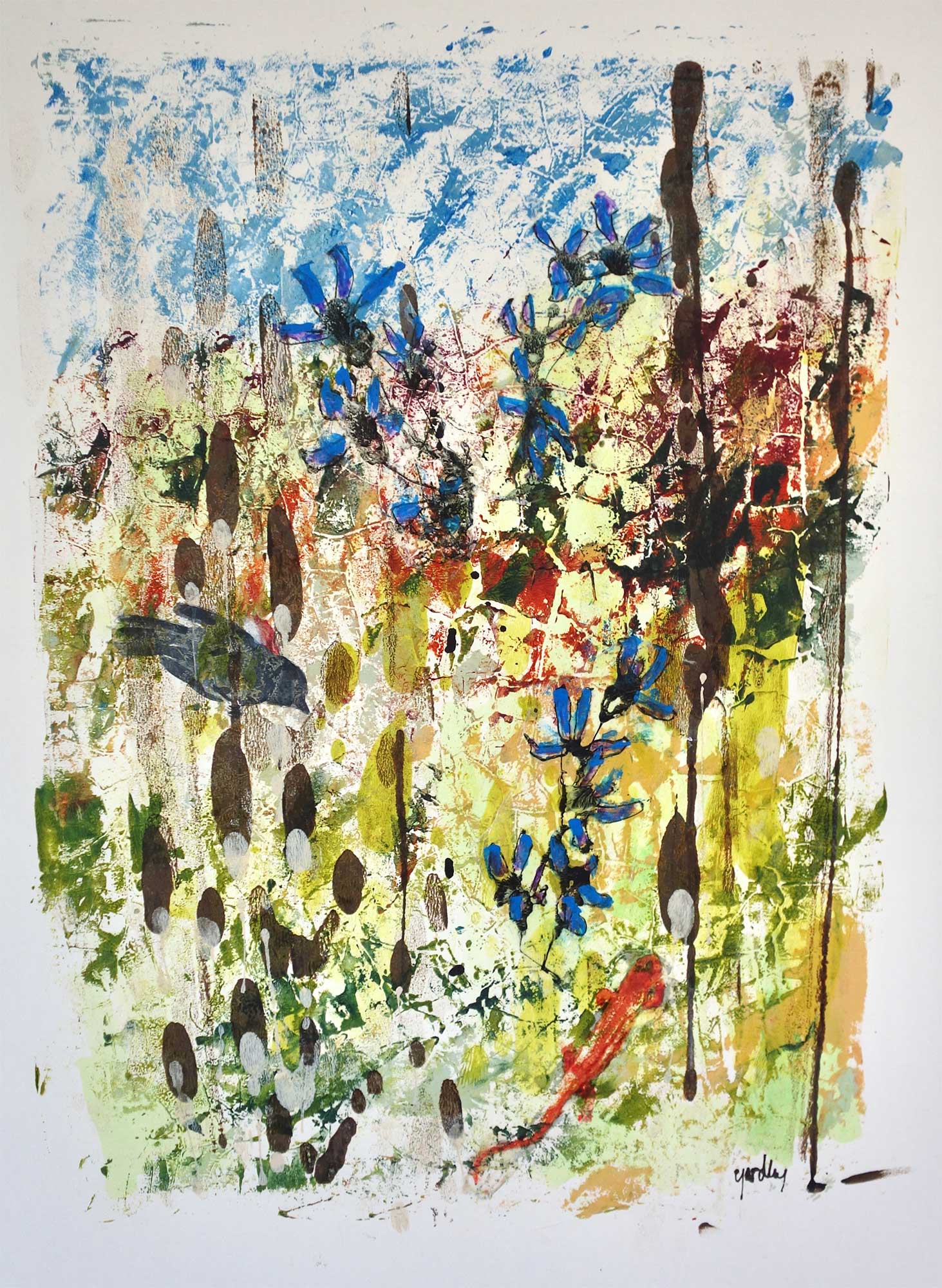 My artwork references the passage of time and temporality in the choice of subjects and media. Works include: suspended moments, blossoming and mountains amidst sweeping volatile skies. The dissolution and coalescence of subjects are enhanced by the choice of media. Whether it is flowing water media or printing processes, the media is mutable and can change in an instant to parallel nature's flux. The intermingling of earth, water and air is my inspiration. This is my world where boundaries erode, incongruent analogies are drawn and malleable materials are chosen to reflect change.