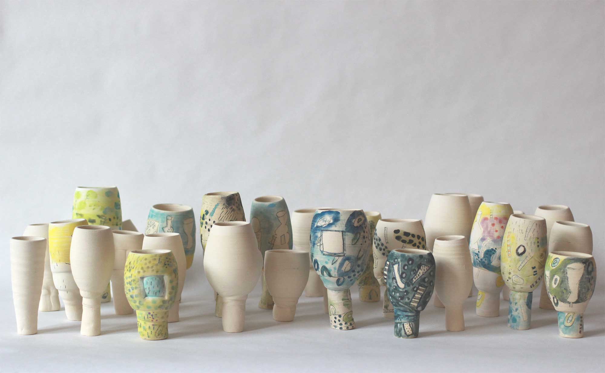 I lived in Mexico as a small child. My parents were doing PhD field work in anthropology, engaging with folk art makers and exploring their workspaces. They attended colorful village ceremonies, celebrations and fantastical dances. I was a young kid along for the ride. Growing up, I spent much time interacting and playing with many beautiful and whimsical objects in our home. My early experiences were fundamental to my sense of wonder in art and the art making process. Magical realism, the transformational qualities of an art object and its function, the liveliness of the possibilities of art and art making, the value an object can hold on many levels; these ideas inform my work today. Color, pattern, narrative, function and the environments they inhabit are at the core of my work. My personal art vocabulary comes through whether I am working in oil, watercolors, hand building in clay or throwing or working with wood in wall sculptures or furniture. I am interested in exploring materials and methods to create art pieces that transform the magical realism of my youth into magical abstraction.