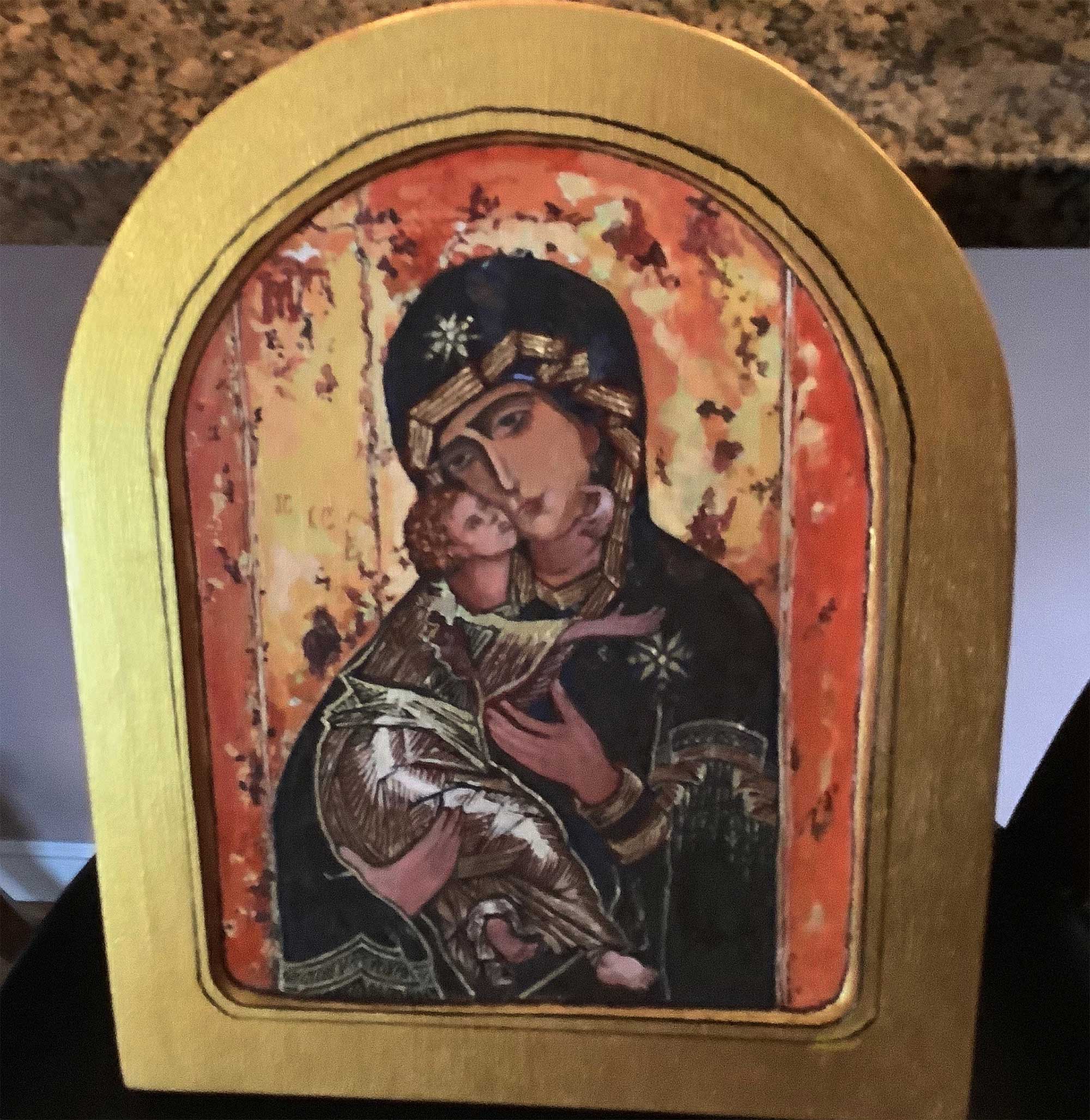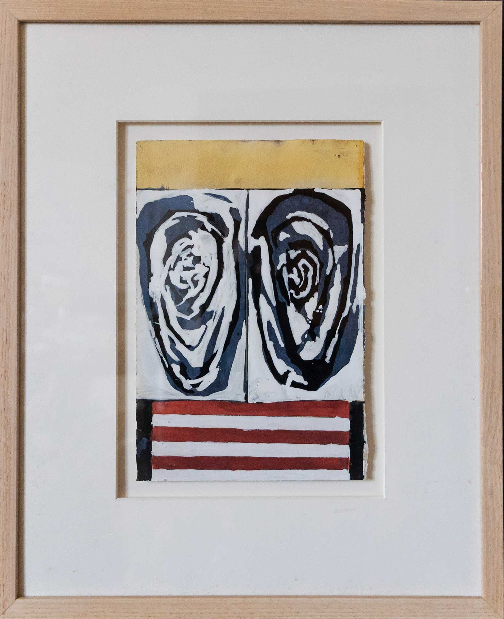 This work by Andrew Flamm ’90 was submitted posthumously by his widow, Michelle Hauser. Andrew died after a heroic battle with cancer on November 23, 2018. From his youth in New York City to his final days in Maine, Andrew was an exceptional artist who was not bound by material or medium. At Skidmore, his early paintings interpreted and transcribed landscapes into abstract symbols and patterns placed on vast plains of golden and earth-tone hues. He moved to Portland, Maine after graduating and continued in this medium, exhibiting her work locally and in Philadelphia and New York City. Andrew’s artistic process, aesthetics and research habits steered him towards success in a number of interrelated disciplines, from mushroom foraging to collecting vernacular photography. In partnership with Michelle, he ran a successful folk art business, Odd Fellows Antiques, housed in a former Odd Fellows Hall where the two had met while sharing studio space. A multi-talented individual, Andrew was also a chef, baker, deli owner and dog breeder. In addition to his wife, he is greatly missed by his parents, Susan and Gene, his brother, Douglas, his very best friend from Skidmore, Reet Das, and Lucy, his five-year-old Pit Bull.