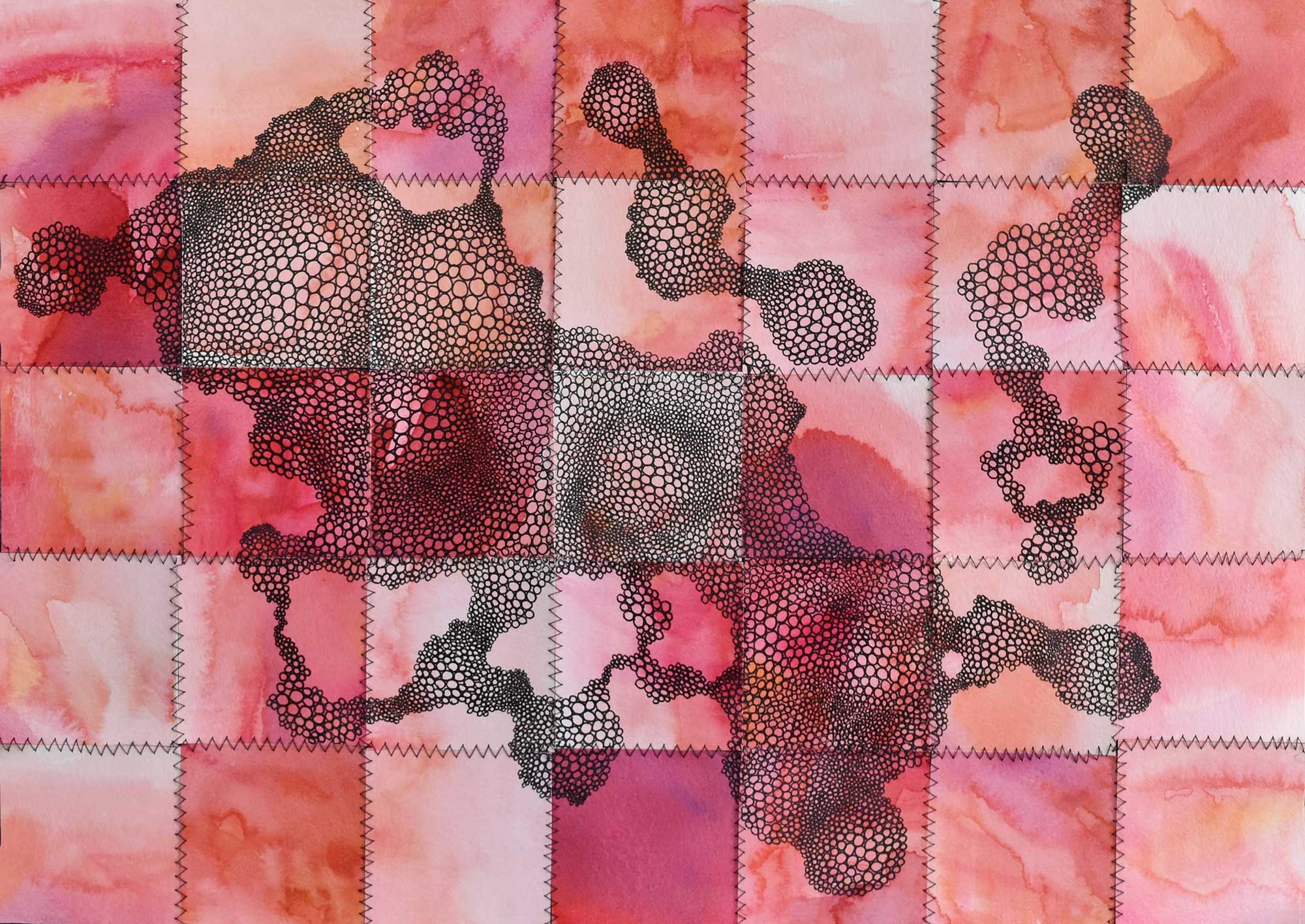 In my work, I seek to examine change and growth through the use of mixed media such as watercolor, ink and thread. I use reconstruction and repetition as symbols of the ebb and flow that happens throughout life.