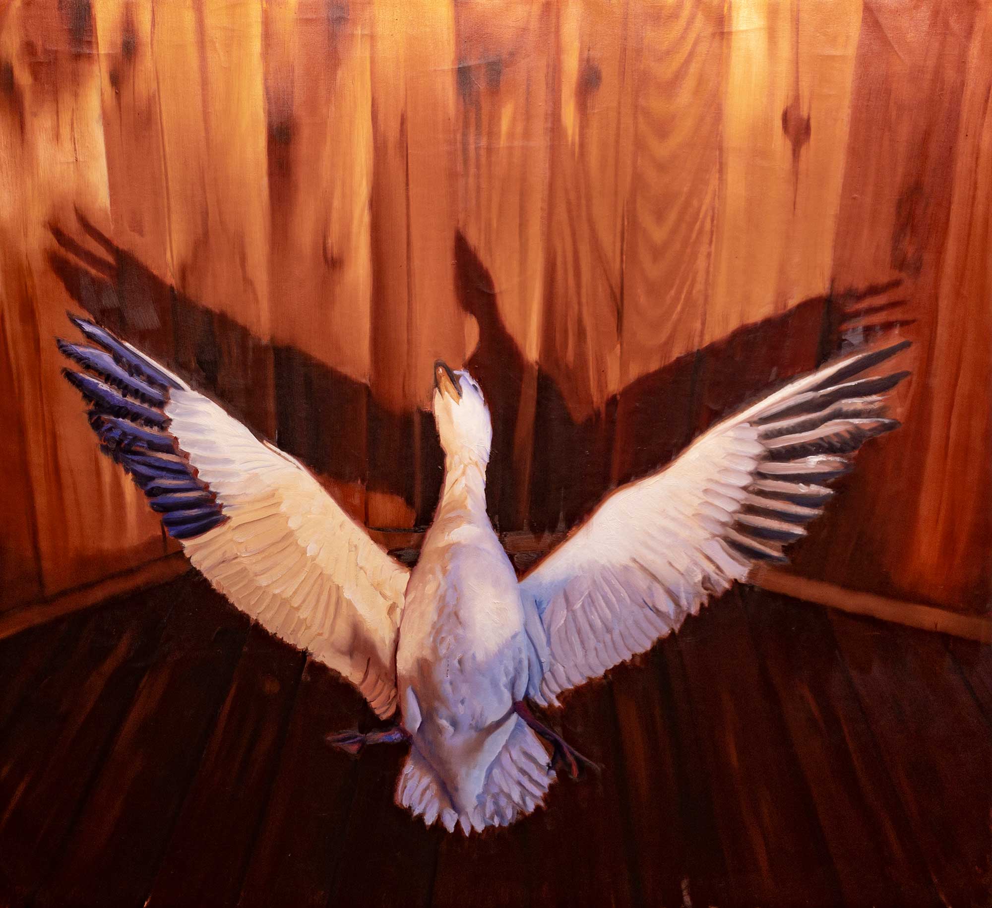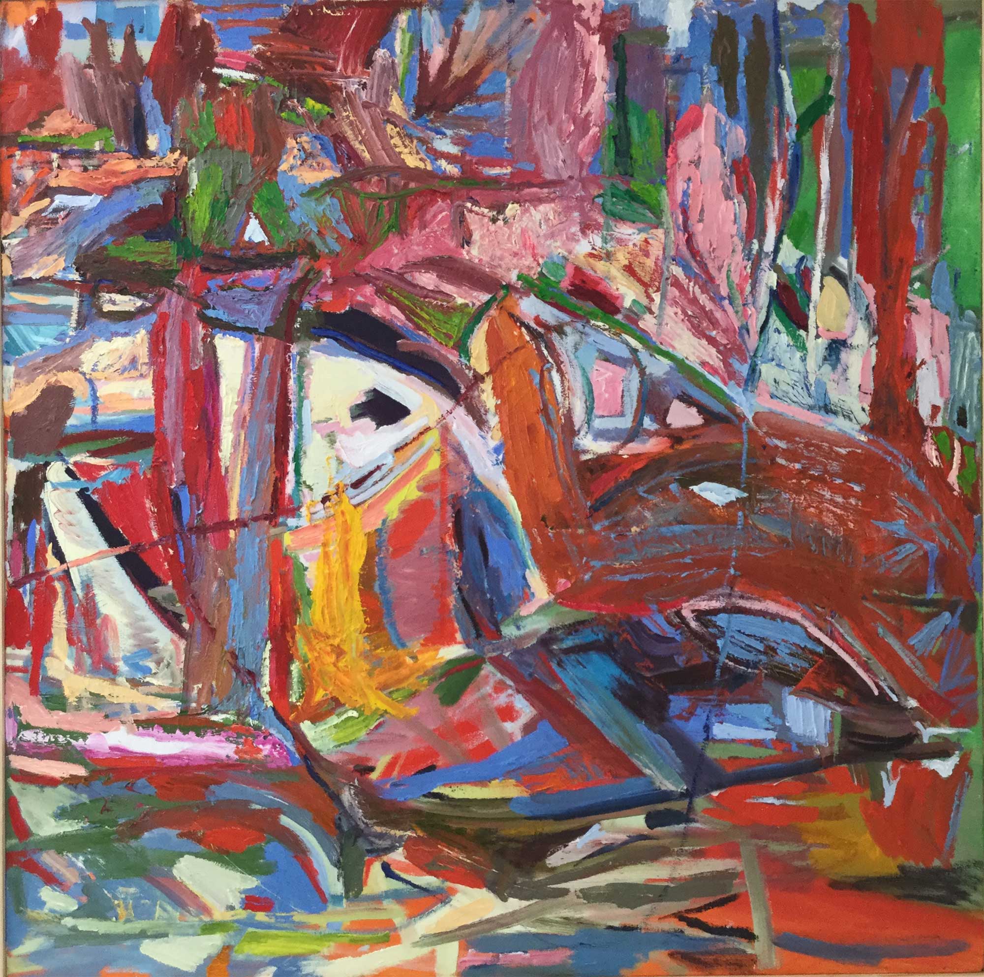 The Koi Series of paintings focus on vividly colored fish - Japanese carp - swimming in a realm of liquid reflections. The red, orange and golden koi often merge with their environment, swallowed by rivulets of water, becoming pure abstractions of light and motion. In a sense, these koi paintings are portraits in water.