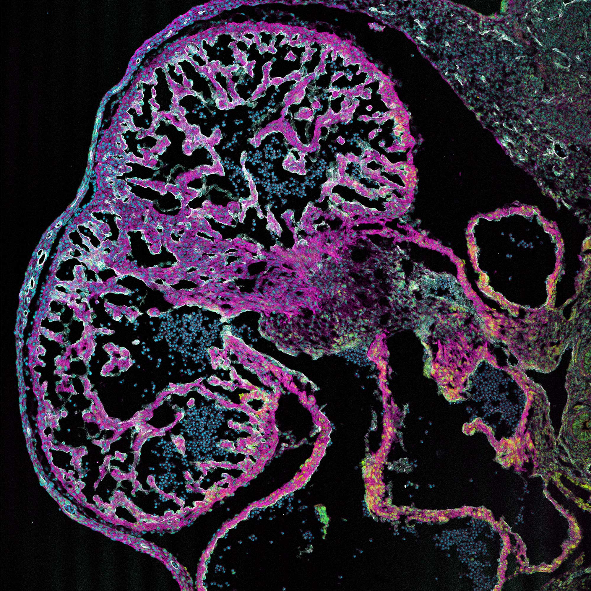 The Developing Endocardium: (2D/10X) Confocal microscopy of the embryonic mouse heart at embryonic timepoint E12.5