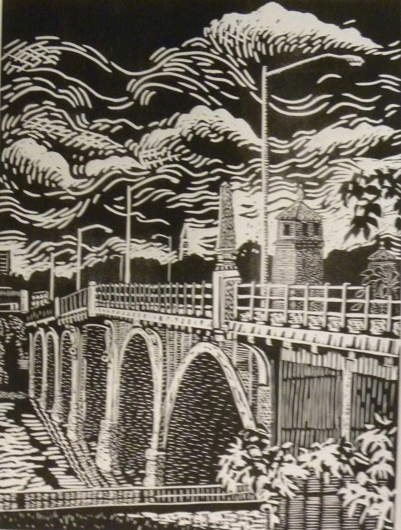 I majored in art at Skidmore, with a concentration in jewelry and enamelling. My interest in working with metal resurfaced when I studied printmaking at the Art Institute of Boston. I have a Charles Brand etching press and create my etchings, monotypes, collagraphs and linocuts with it. Nature is a continuous source of inspiration for me and I often do a pleine air painting of a subject before doing a print of it.