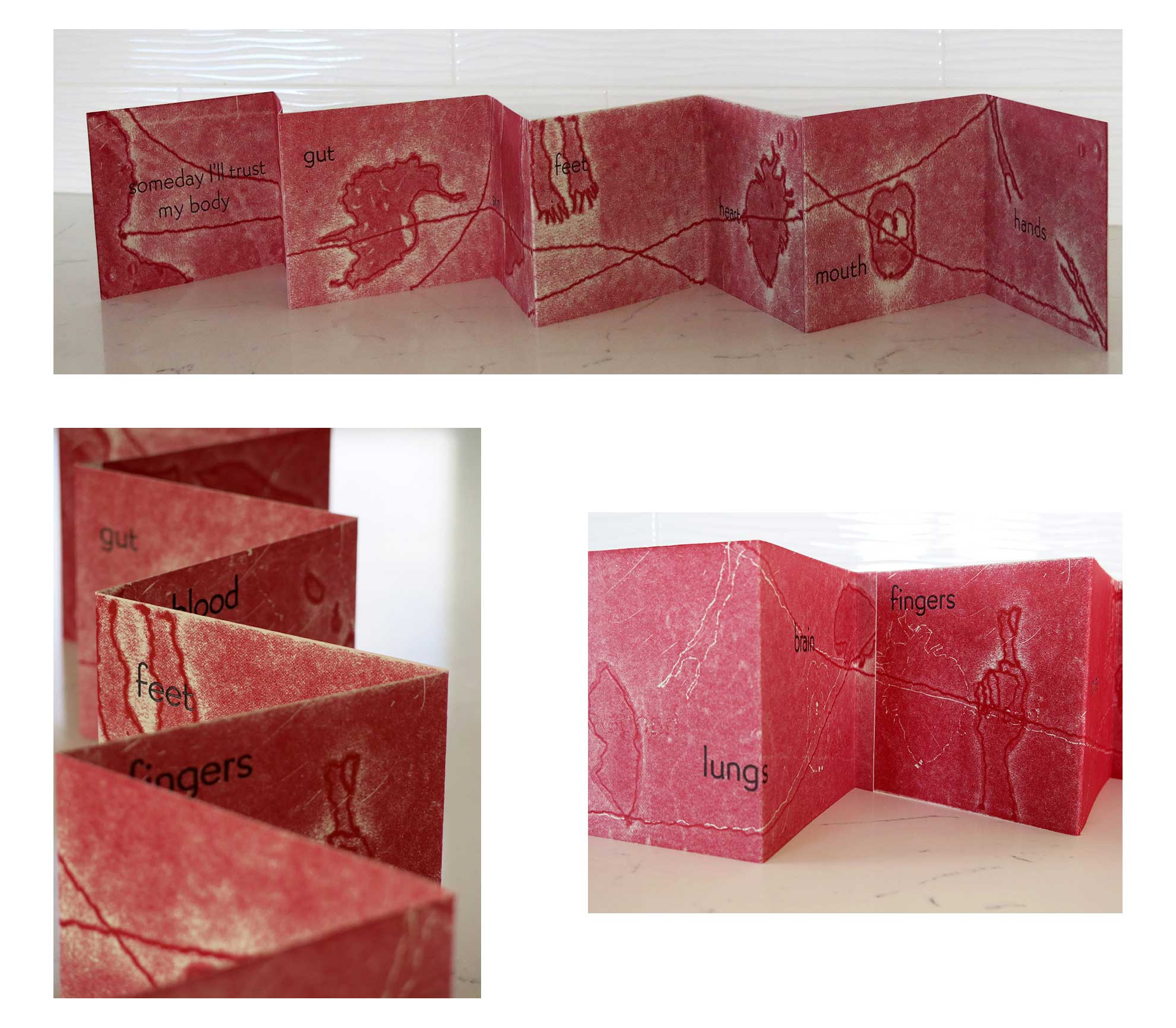 I was diagnosed with Hodgkin's Lymphoma in the Fall of 2019. These prints and accordion fold book trace the physical and emotional waves I've experienced during my treatment journey.