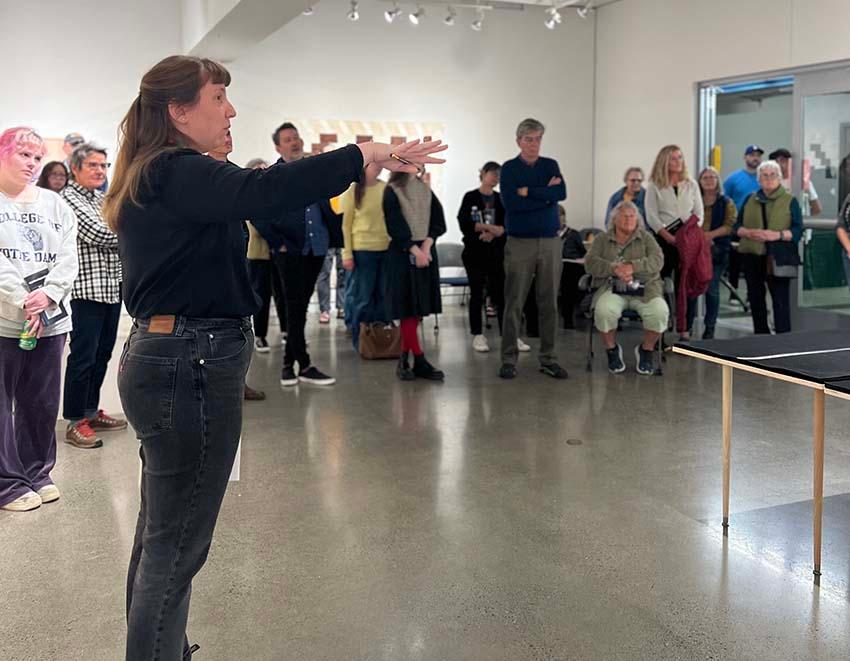 There will be an Artists’ Talk on October 15 at 5:30 p.m. with Schoonmaker, Tang Teaching Museum Dayton Director Ian Berry, and Fiber artist Susie Brandt; both Brandt and Berry collaborated with Mensing on numerous occasions.