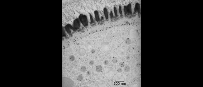 Immunogold labeling using anti-EPS antibodies in the vesicles of Penium cell